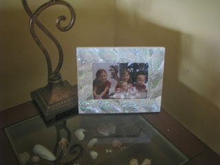 | These are our Grandbabies in New York City, and they sent this BEAUTIFUL picture framed in Abalone Shells that 'fits 'perfectly on our new shell table!! |